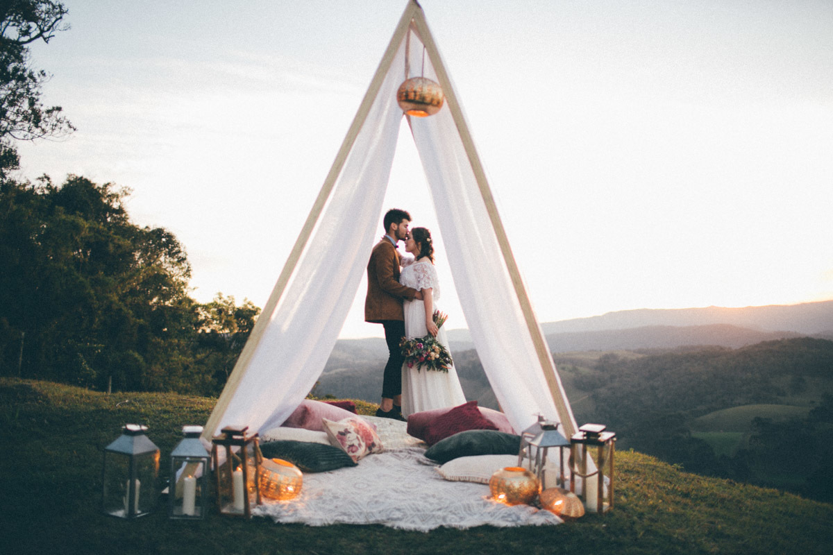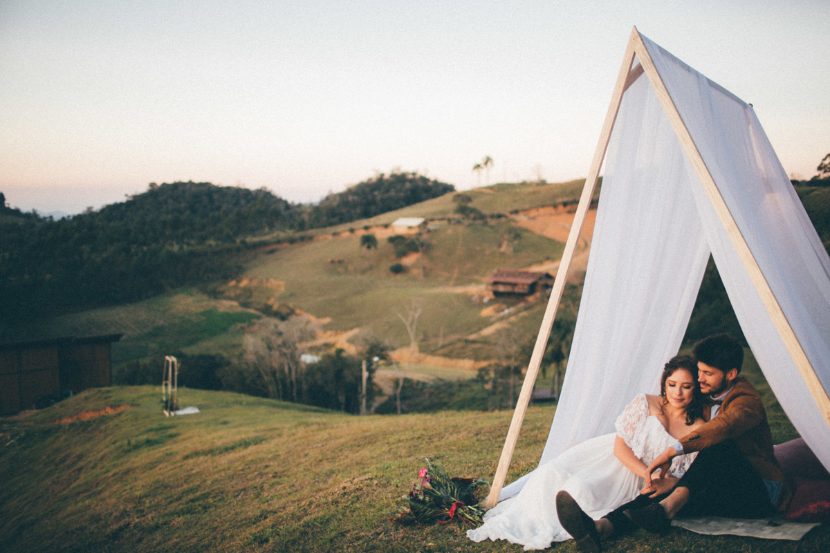 E foi assim, em um dia que Deus acordou inspirado, que fotografei o elopement deles com cenário pensado por mim e assinado pela própria Cacá em Rancho Queimado, já que eles são os donos da empresa de decoração A Gente que Faz, onde fazem eventos lindos e muito autênticos, bem como eu amo, com aquela pegada boho e gringa de pinterest ;)