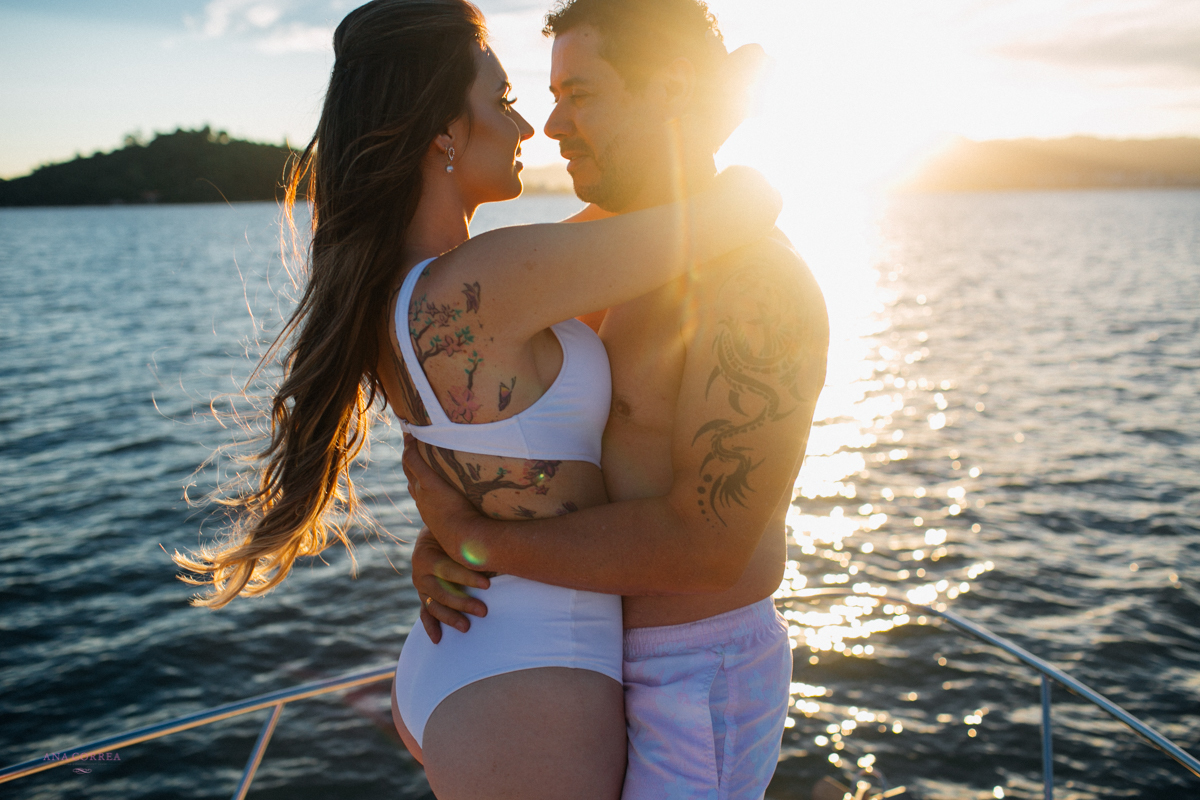 E assim foi, passeamos de barco até algumas praias de Porto Belo e Bombinhas, vimos o nosso por do sol do mar - como ela sonhou - e ainda conseguimos fotografar no meio das pedras, bem naquela horinha que o sol vai embora e deixa um preto com dourado lindo no céu.